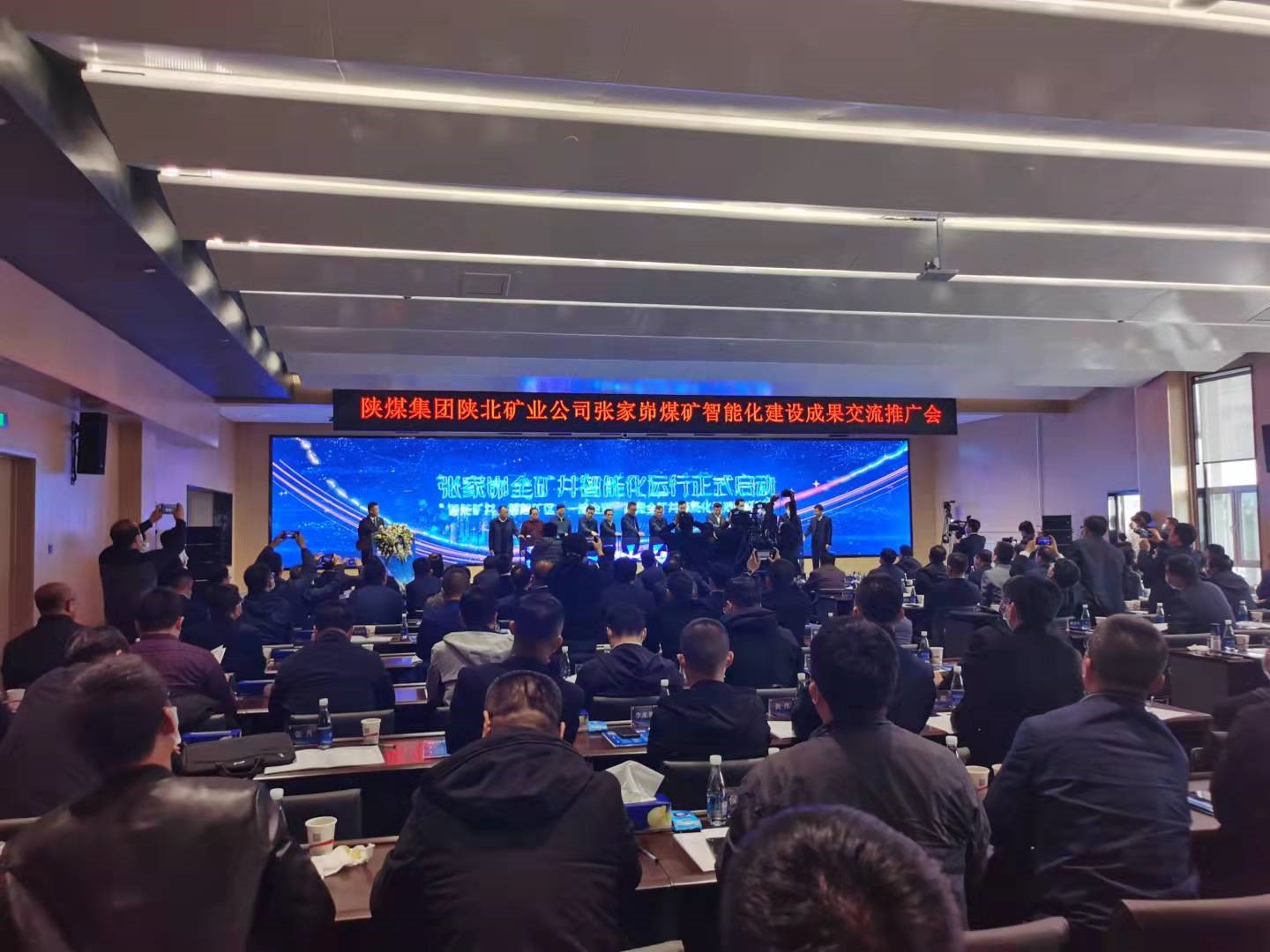 2021年10月19日,中国煤炭工业协会组织有关专家在陕西省神木市召开了“智能化煤矿巨系统关键技术装备研发与示范应用”科技成果鉴定及交流推广会。中国煤炭工业协会副会长、中国煤炭学会理事长刘峰,中国工程院院士彭苏萍、武强、王双明、王国法、中国科学院院士何满朝,北京科技大学校长杨仁树,中国矿业大学校长宋学锋,中国矿业大学(北京)校长葛世荣,辽宁工程技术大学党委书记、校长梁冰,中煤能源集团科技发展部管曾伦,陕西省信息研究院、西安电子科技大学张小平,陕煤集团党委委员、副总经理尚建选、王世斌,陕北矿业公司党委书记、董事长、总经理郭佐宁,副总经理迟宝锁、牛虎明等领导参加会议。