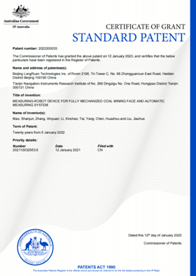 在矿山国产工业软件领域,龙软科技作为行业龙头企业,一直秉承“自主可控、原创开发”的发展理念,瞄准行业痛点、潜心研究攻关,勇攀智能矿山建设体系化技术高峰,以多年技术沉淀及行业积累为基础,先后布局了时空智能管控平台、智能综采综掘、透明化矿山、新型开采方式及装备等系列专利组。同时,龙软科技以“持续引领行业前沿技术,立足中国,服务全球矿山智能化建设”为宗旨,积极开展国际化知识产权布局,持续研发通用、先进、实用的智能矿山数智解决方案。近日,围绕智能化矿山建设必备的智能化工作面测量装备、智能化管控平台,公司“一种综采工作面测量机器人装置和自动测量系统”、“基于地质测量保障系统的矿山智能化管控平台建设方法”两项专利在国内发明专利授权基础上,分别获得了美国、加拿大、澳大利亚、俄罗斯等国家的国际发明专利授权,在智能矿山国际业务领域构筑了专利壁垒,为龙软科技走出国门、服务全球打下了坚实基础。