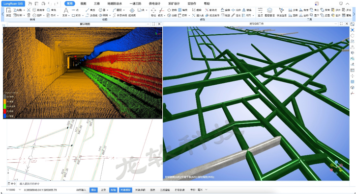 综上所述,龙软科技GHJS12矿用本安型三维激光扫描仪和云GIS融合数字化巷道建模技术,为煤矿井工巷道工程测量、数字化动态建模、数据分析及应用提供整体解决方案;为煤矿智能化地质保障和采掘应用提供一体化工具和技术服务。