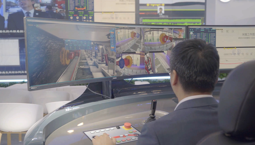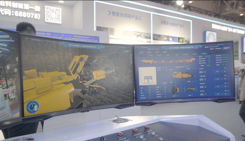 在展会现场进行公司技术验证基地(河北燕郊)综采工作面的远程管控