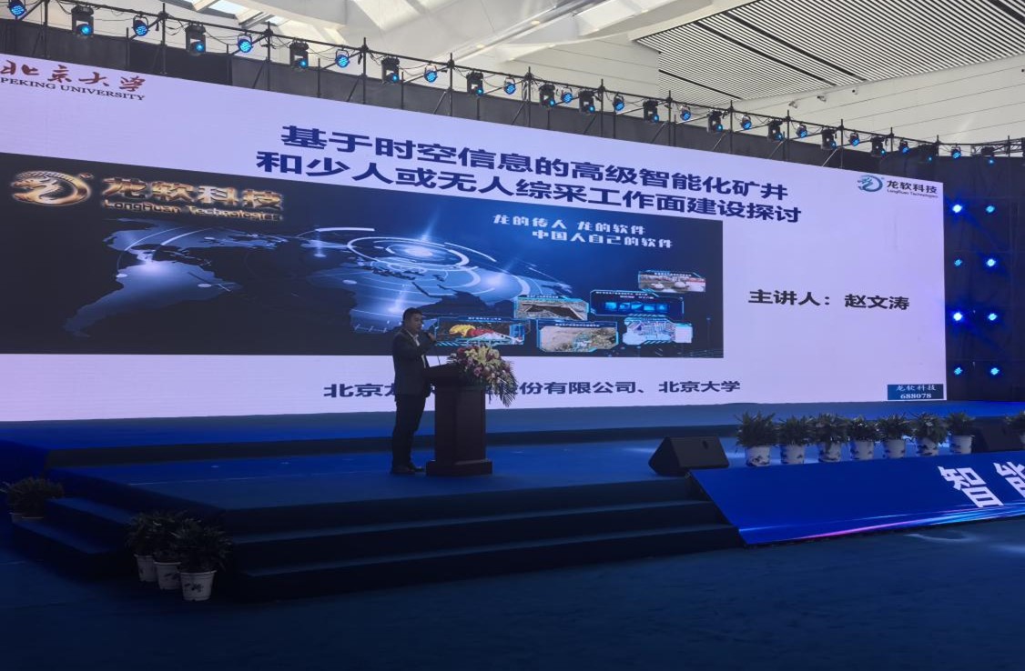 在展会期间,龙软科技的技术人员还积极参与了技术交流研讨活动,与来自全国各地的专家学者和企业家进行了深入的探讨和交流。龙软(山西)智控副总经理赵文涛做了题为“基于时空信息的高级智能化矿井和少人或无人综采工作面建设探讨”的专题报告。