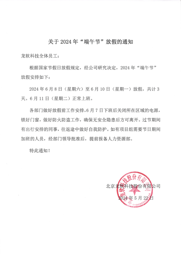 关于2024年“端午节”放假的通知