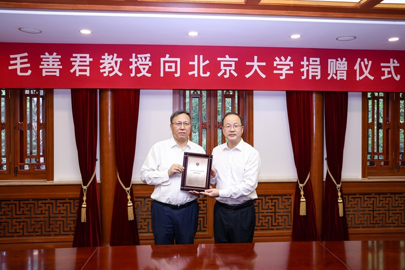 何光彩书记向毛善君董事长颁发了“北京大学杰出教育贡献奖”