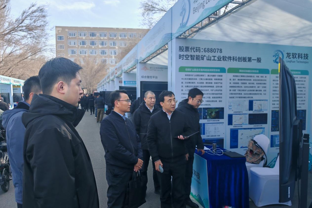 龙软科技在技术装备展上向与会领导汇报了矿山智能化建设的实践经验和核心产品,包括面向政府安全监管的非煤矿山复合灾害风险监测预警系统、非煤矿山安全监管监察系统、事故应急辅助决策系统,面向非煤矿山企业的龙软智图、矿山采掘工作面超前探测系统、矿山时空智能大模型应用、矿山地质保障系统、矿山灾害工业仿真及预测预报系统、矿山综合智能协同管控系统等产品。龙软科技打造的全栈式时空智能解决方案等成果,为行业落实“减人、增安、提效”智能化建设目标提供了实践方案,助力推动先进适用技术在非煤矿山的规模化落地。