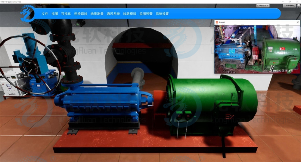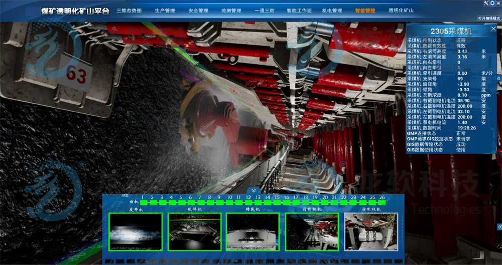(2)集成安全监测、人员定位、自动化、工业视频等数据,支持数据驱动更新场景,动态自动更新场景,确保三维场景和井下工况一致。